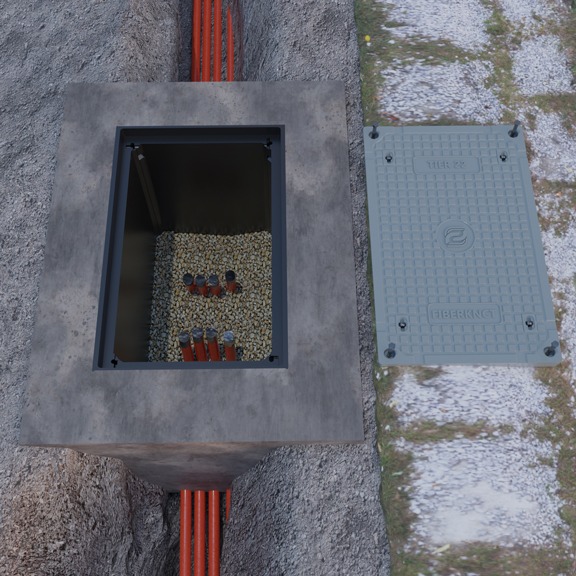 The handhole is a fiber vault with a side pannels design that introduces the most cost-effective shipping, and its quick construction factor increases deployment speed for customers.